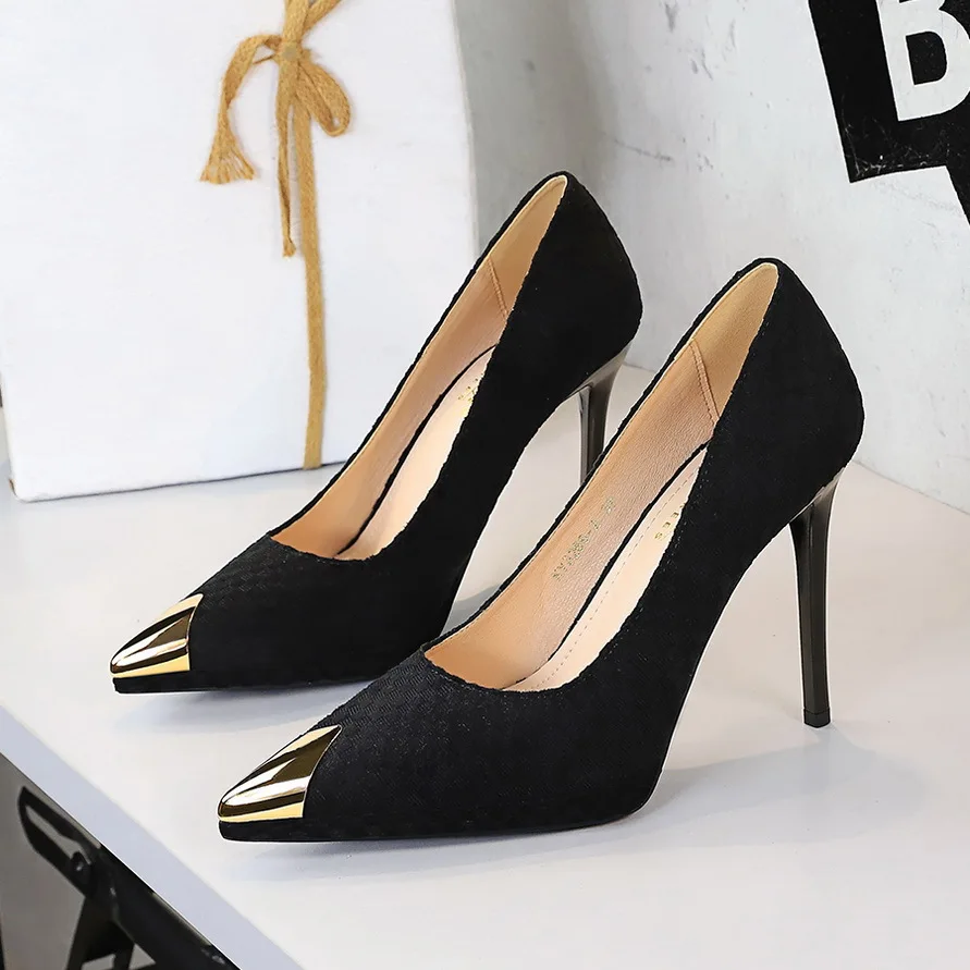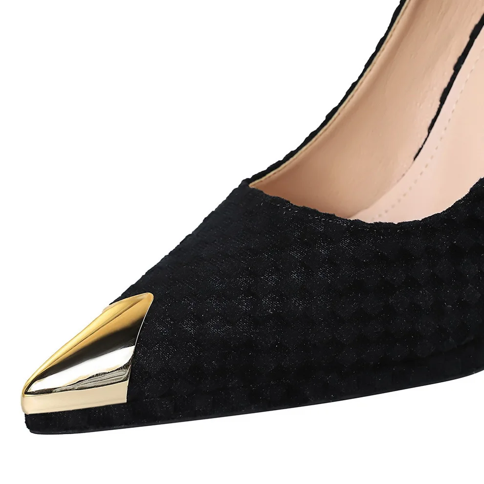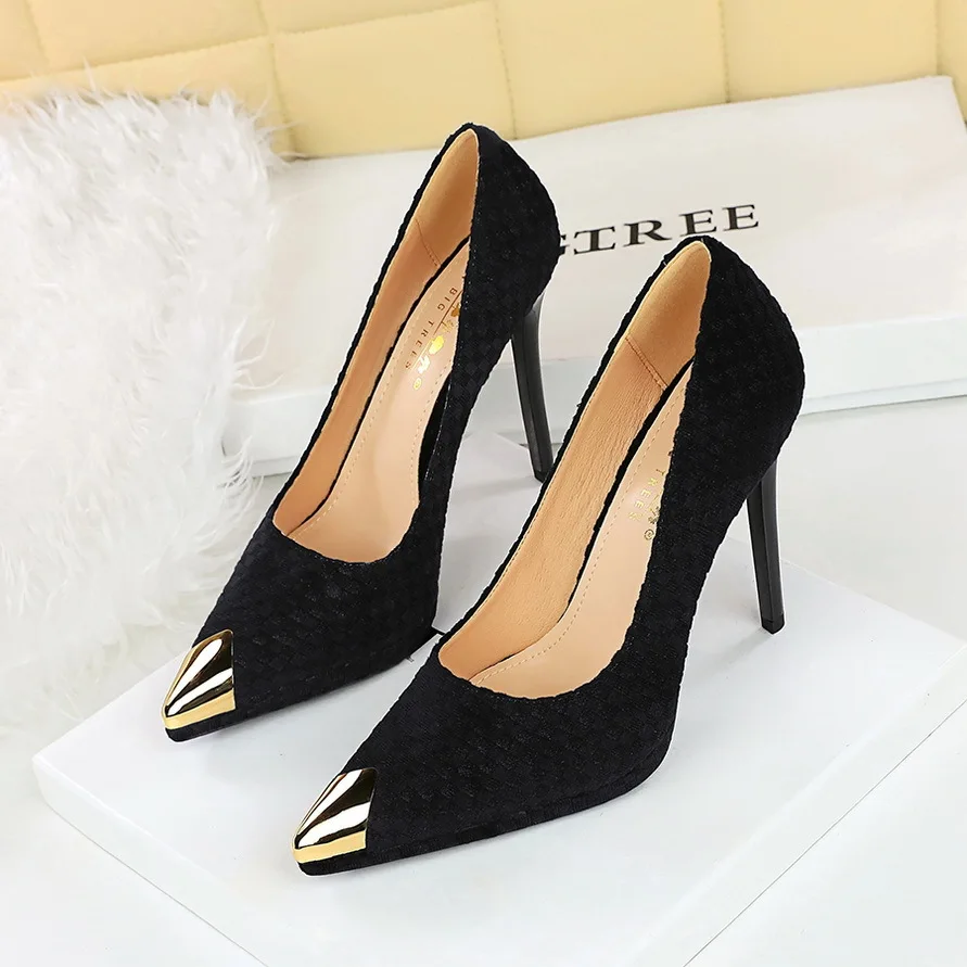 Women's Super High Heels Pumps Shoes Waterproof Platform Metal Pointed Thin Woven Pattern Heels 11cm Height Women Shoes